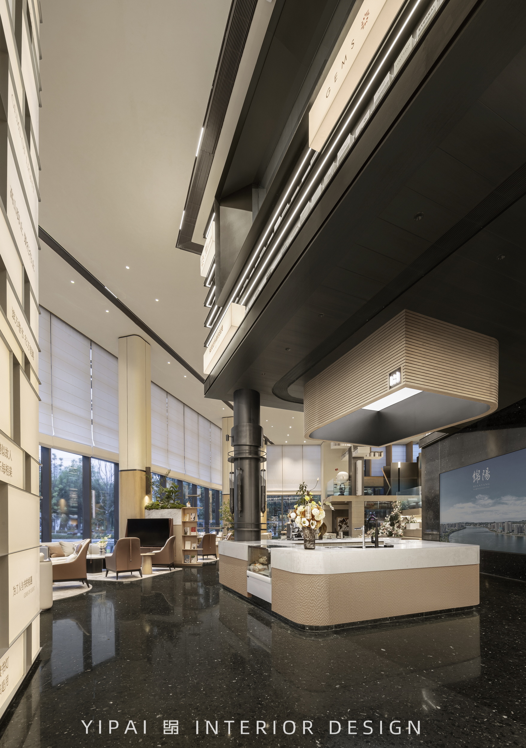和光璟樾營銷中心坐落于四川綿陽,傲踞綿州大道中軸,縱橫路網(wǎng)暢達全域。位屬經(jīng)開萬達 CBD 生活圈,更有三江體育公園綠意環(huán)繞,出則繁華盡攬,入則靜謐相擁,地段與配套優(yōu)勢凸出,盡顯都市理想生活之姿。伊派設計聯(lián)結自然、城市、建筑與人文,構建“體驗+場景”的設計主線,讓城市藝術書吧對話涪城山水,時尚生活對話在地藝術。悅享書吧,徜徉書海;氛圍水吧,咖享時光;沙盤區(qū)域,體塊序列;深淺洽談區(qū),自然共生;兒童區(qū)域,真趣探游······打造出一個集日常、商務、藝術與休閑一體的多元體驗空間。