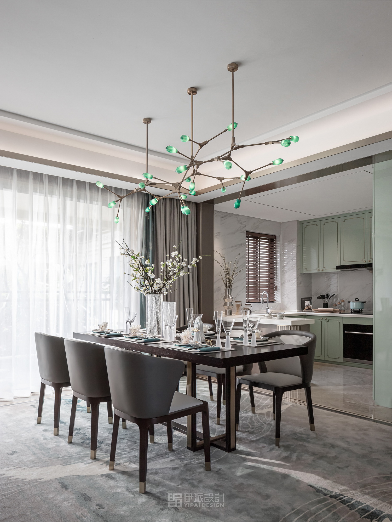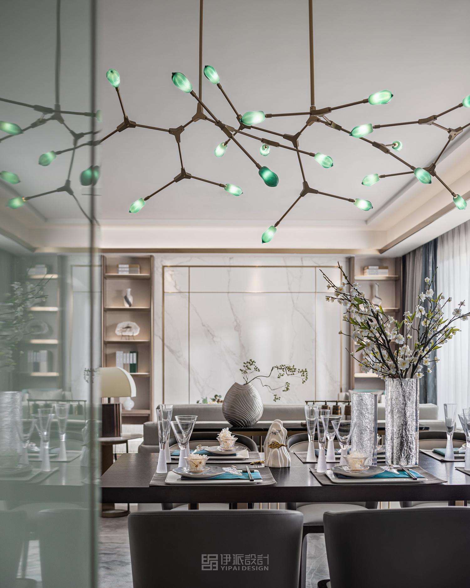在自然資源匱乏的城市中,人們更向往與山水和諧共處。伊派設(shè)計抓住這一關(guān)鍵點,取納地緣自然與東方人文,汲取傳統(tǒng)哲思與現(xiàn)代精神,于數(shù)種內(nèi)核的交融合一,寫意美好人居的理想,頗具風雅質(zhì)感的設(shè)計形式。