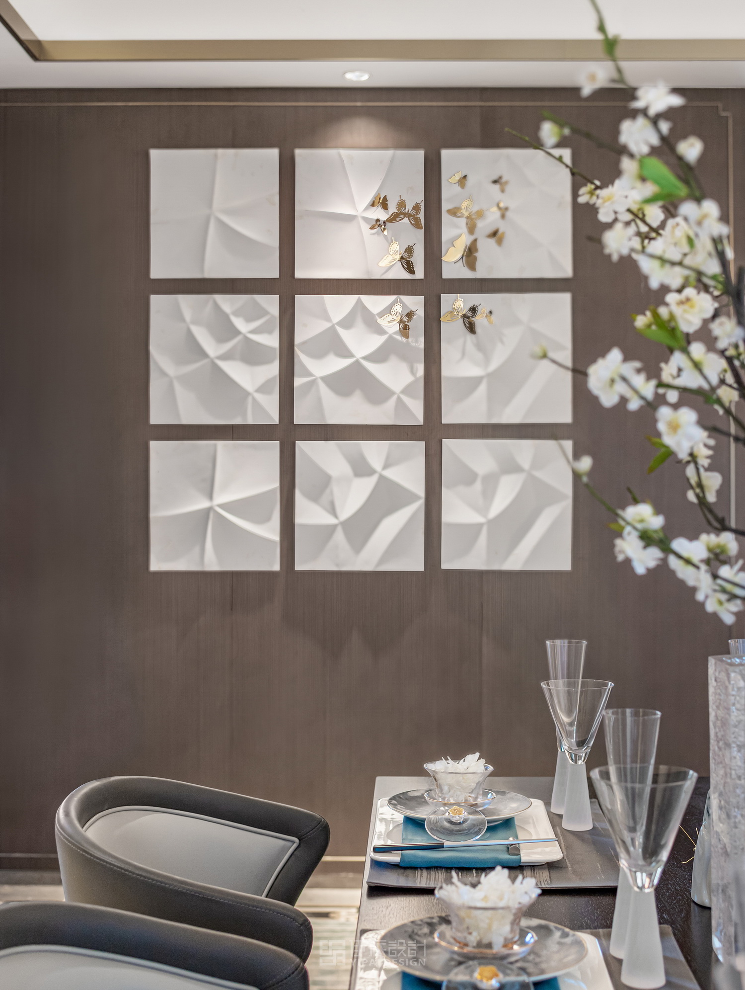 本案戶型為創(chuàng)新小高層,軟裝定位為現(xiàn)代東方雅奢風格。硬裝干凈素雅,低調(diào)簡約奢華的硬裝氛圍配合著干凈利落的沉穩(wěn)的灰調(diào),略帶東方韻味將優(yōu)雅的姿態(tài)完美呈現(xiàn)。室內(nèi)軟裝設(shè)計則是從這樣的設(shè)計藝術(shù)提煉出“中式雅奢”風格意境中,創(chuàng)造了更加不可多得的韻味。從樣板房空間設(shè)計的整體畫面而言,更有內(nèi)在高雅而柔美的堅韌與品位。