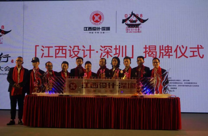 盛思民、鄭福明、萬文拓、文健、曾九和、李沖沖、陳懿、黃宏明、汪海軍、楊裕滿、王啟迪等11位發(fā)起人為「江西設(shè)計(jì)?深圳」成立揭牌儀式。